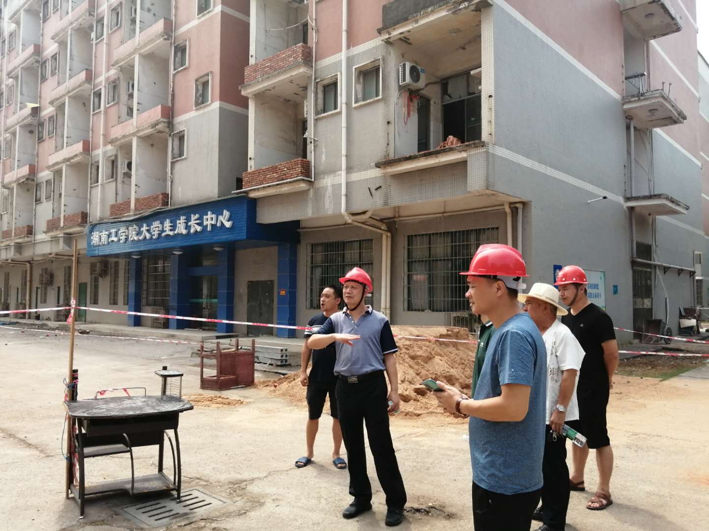 811日上午,校长罗建华、副校长胡穗冒着炎炎烈日,深入校园就基建和润泽公寓学生宿舍维修改造工作进行检查。
