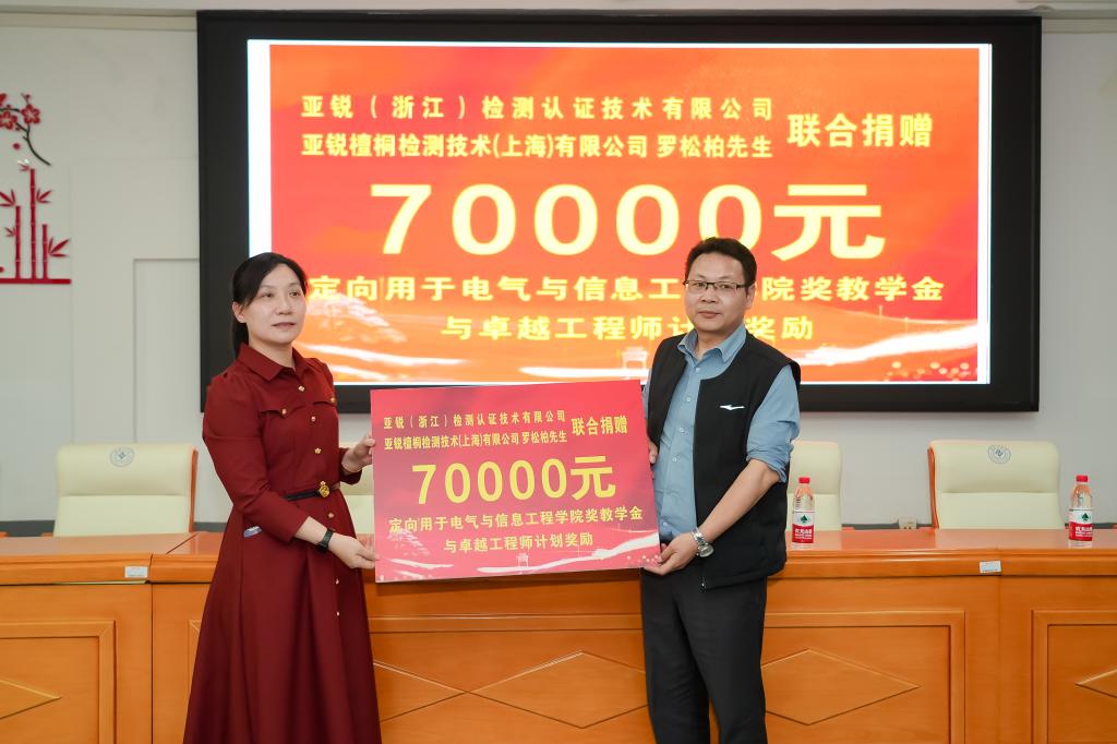 成立仪式中,校友反哺母校成为亮点:07届校友、亚锐檀桐检测技术(上海)有限公司总经理邓勇签约捐赠7万元,同届校友衢州市新扬机械制造有限公司的董事长肖硕文意向捐款6万元,定向支持学院教育事业发展;98届校友、广东美芯润达电子科技有限公司董事长胡跃进与学院签订横向合作协议,推动技术攻关与人才共育。