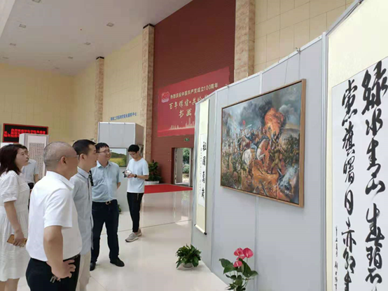 百年征程波澜壮阔,百年初心历久弥坚,为隆重庆祝中国共产党成立100周年,由校工会主办,教职工书画协会承办的“百年辉煌 共绘华章”书画展于6月28日学校阳光服务大厅开展。