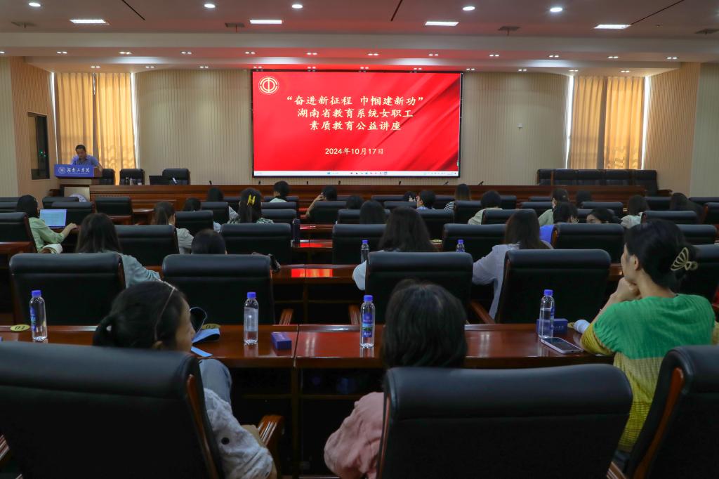 为深入宣传习近平新时代中国特色社会主义思想,贯彻落实习近平总书记关于工人阶级和工会工作、妇女工作的重要论述。10月17日下午,开元官网举办了“奋进新征程·巾帼建新功”为主题的女职工素质教育公益讲座活动,湖南省总工会干部学校副教授、工运研究所所长陈胜君进行专题授课,来自全校19个分工会的近100名女教职工代表到现场聆听讲座。讲座活动由工会副主席张勇主持。