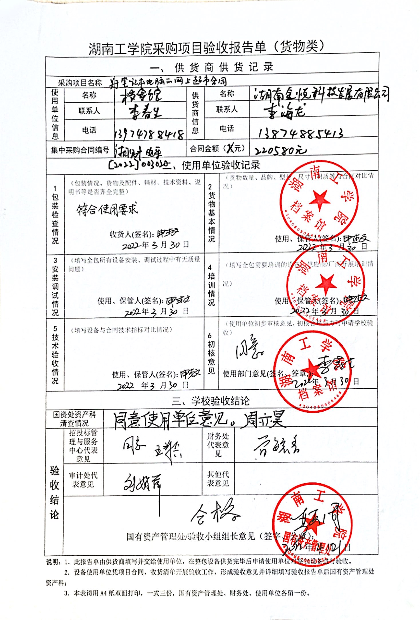 2022年4月关于湘财电采【2022】003020项目验收情况公告