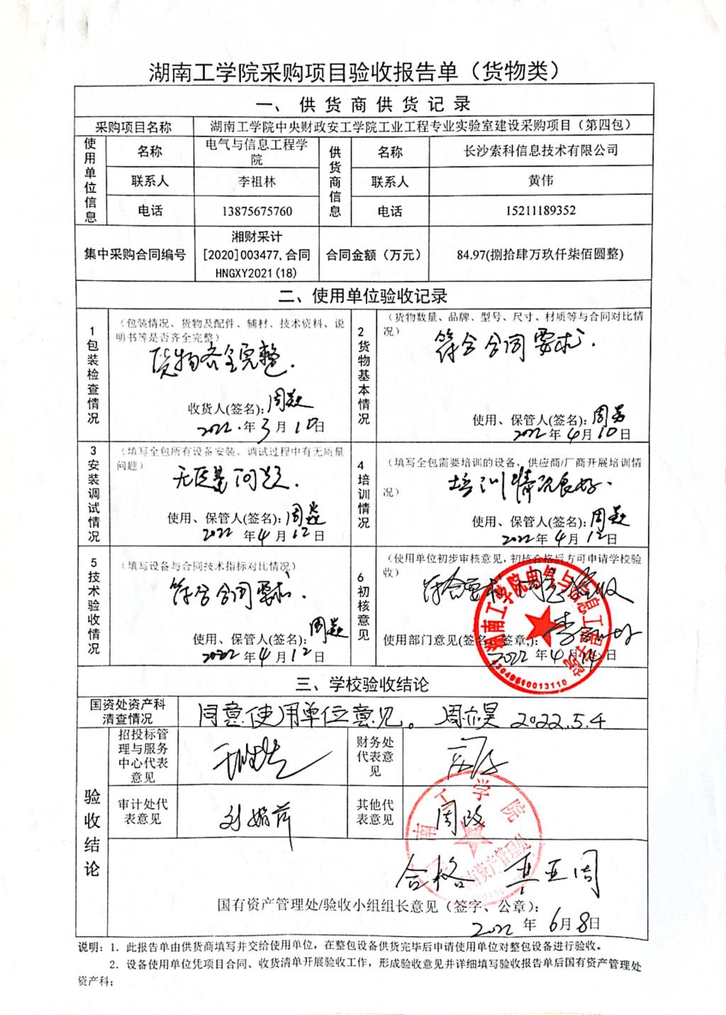 根据国有资产管理处对采购项目的验收安排,2022年5月4日国有资产管理处组织招投标管理与服务中心、审计处、财务处、学科建设与发展规划处以及使用部门代表对供应商的实验设备进行现场验收。
