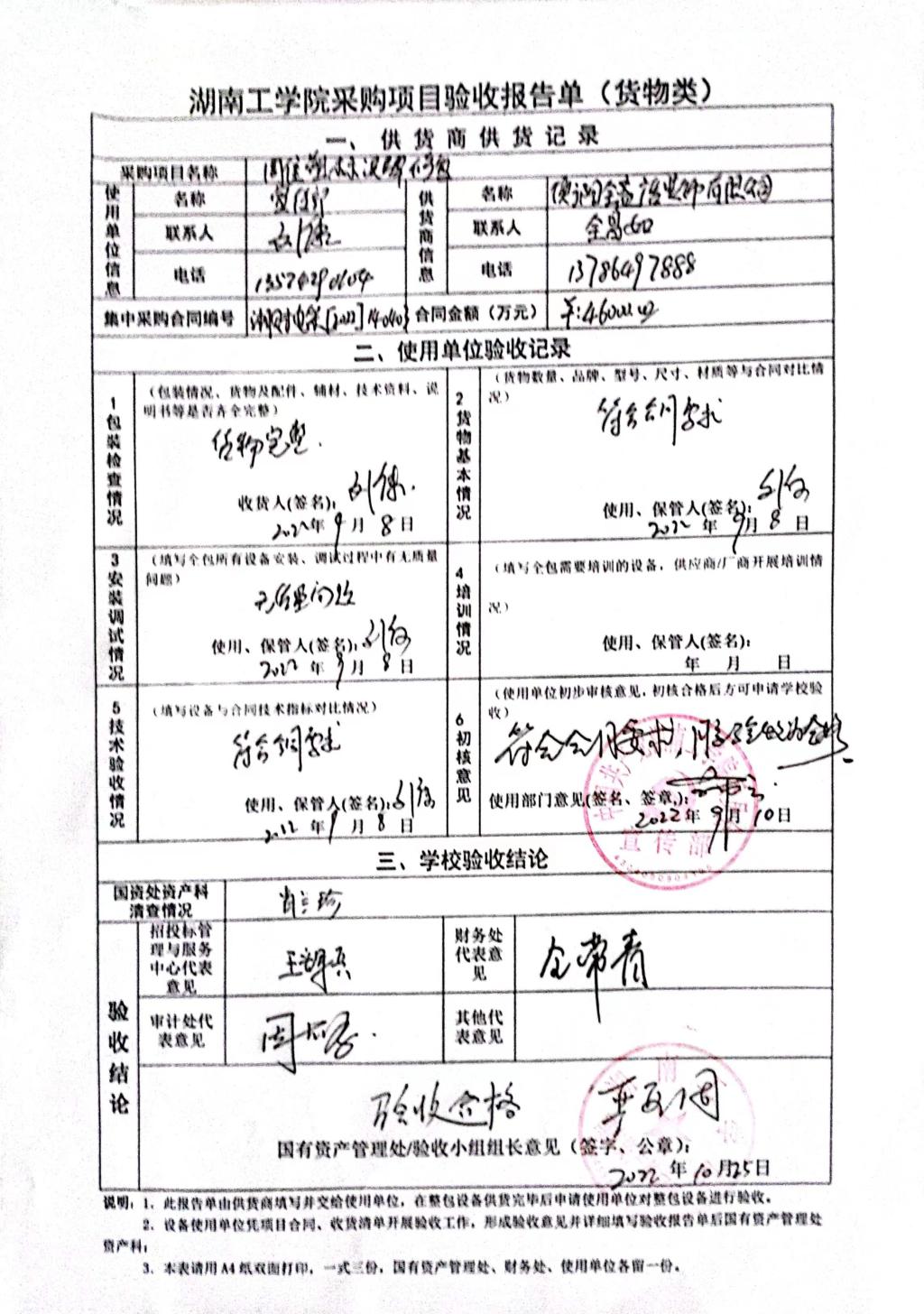 2022年9月关于湘财电采【2022】140403号项目验收情况公告