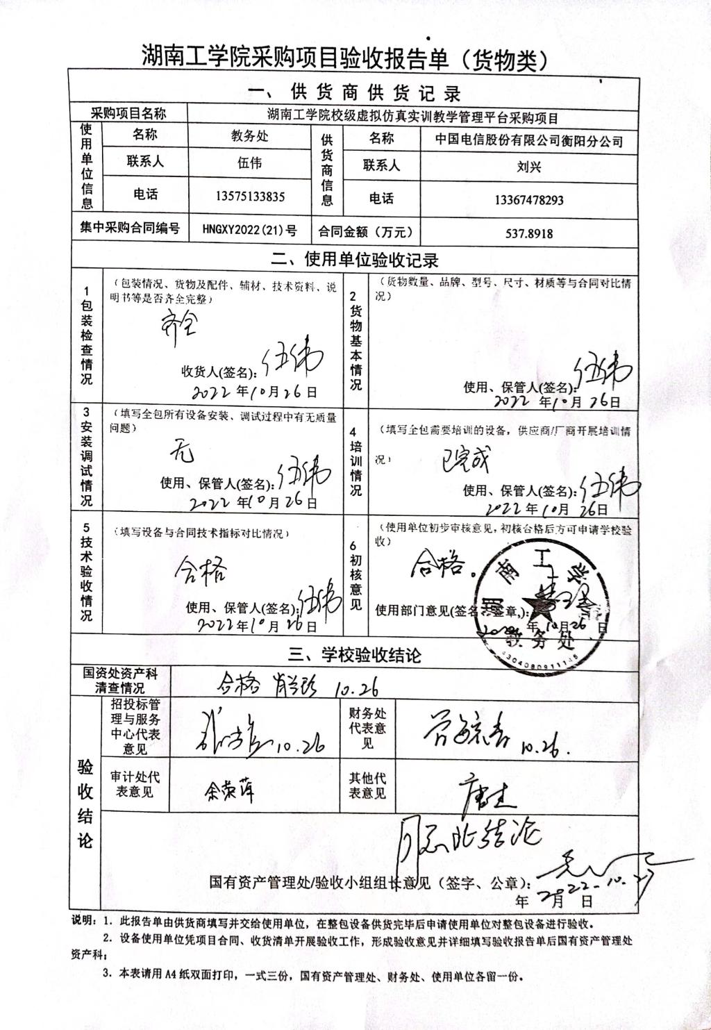 根据国有资产管理处对采购项目的验收安排,2022年10月26日国有资产管理处组织招投标管理与服务中心、审计处、财务处、网络信息中心、各使用部门以及供货商代表参加教务处采购项目《开元集团网站校级虚拟仿真实训教学管理平台》进行现场验收。