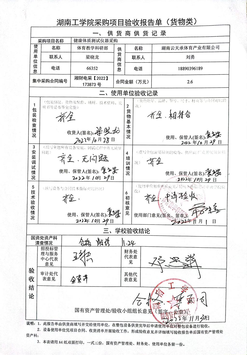 2022年11月关于湘财电采【2022】173873号项目验收情况公告