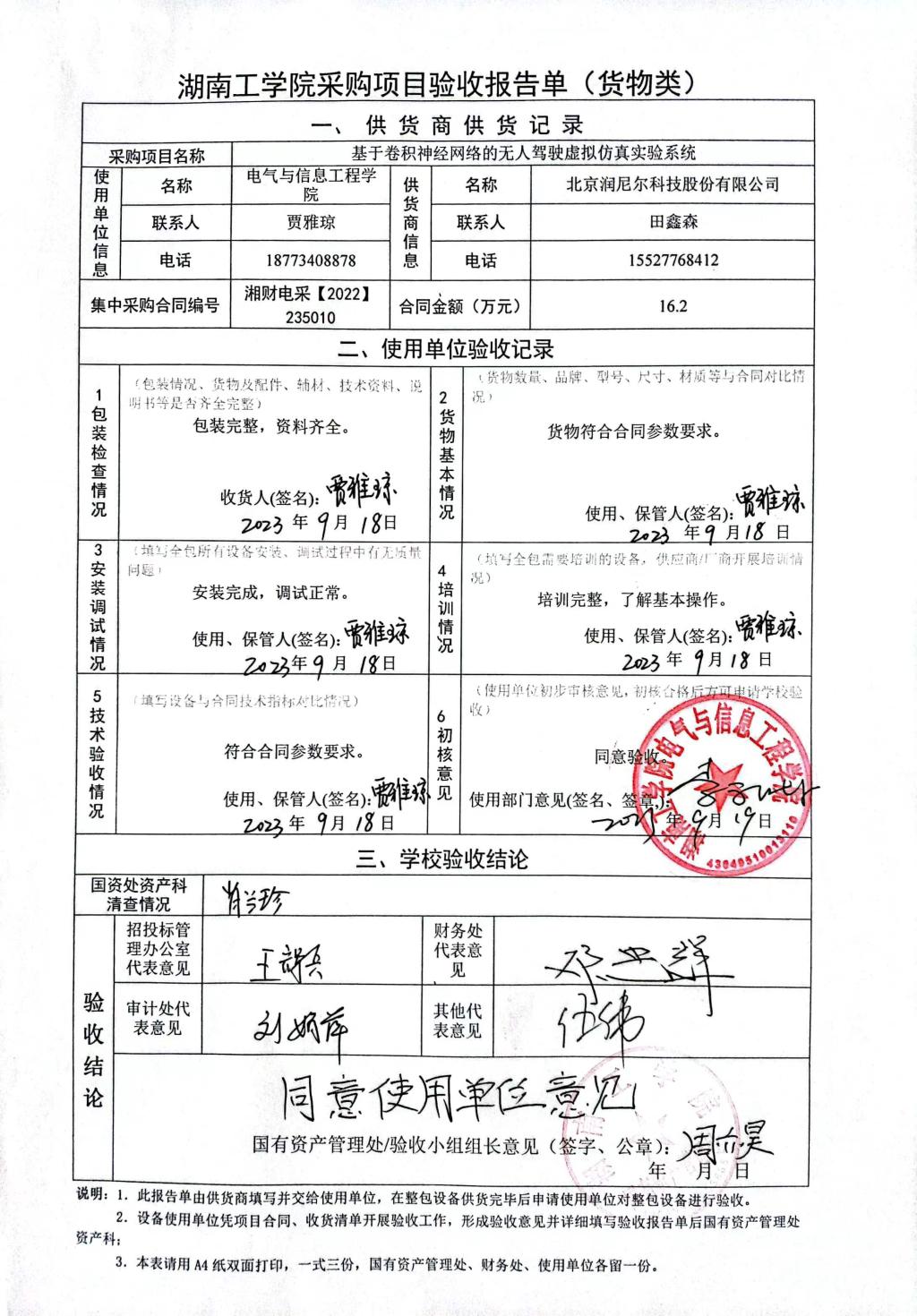 2023年10月关于湘财电采【2022】235010号项目验收情况公告