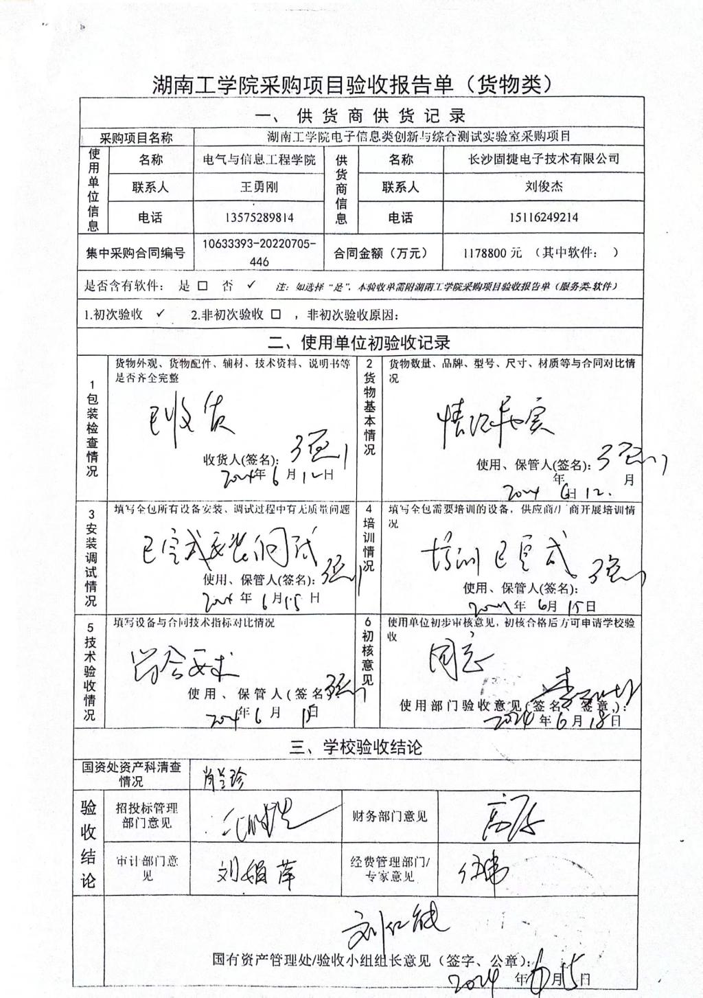 2024年6月关于HNGXY2023【119】号 购字2023【62】号采购项目验收情况公告