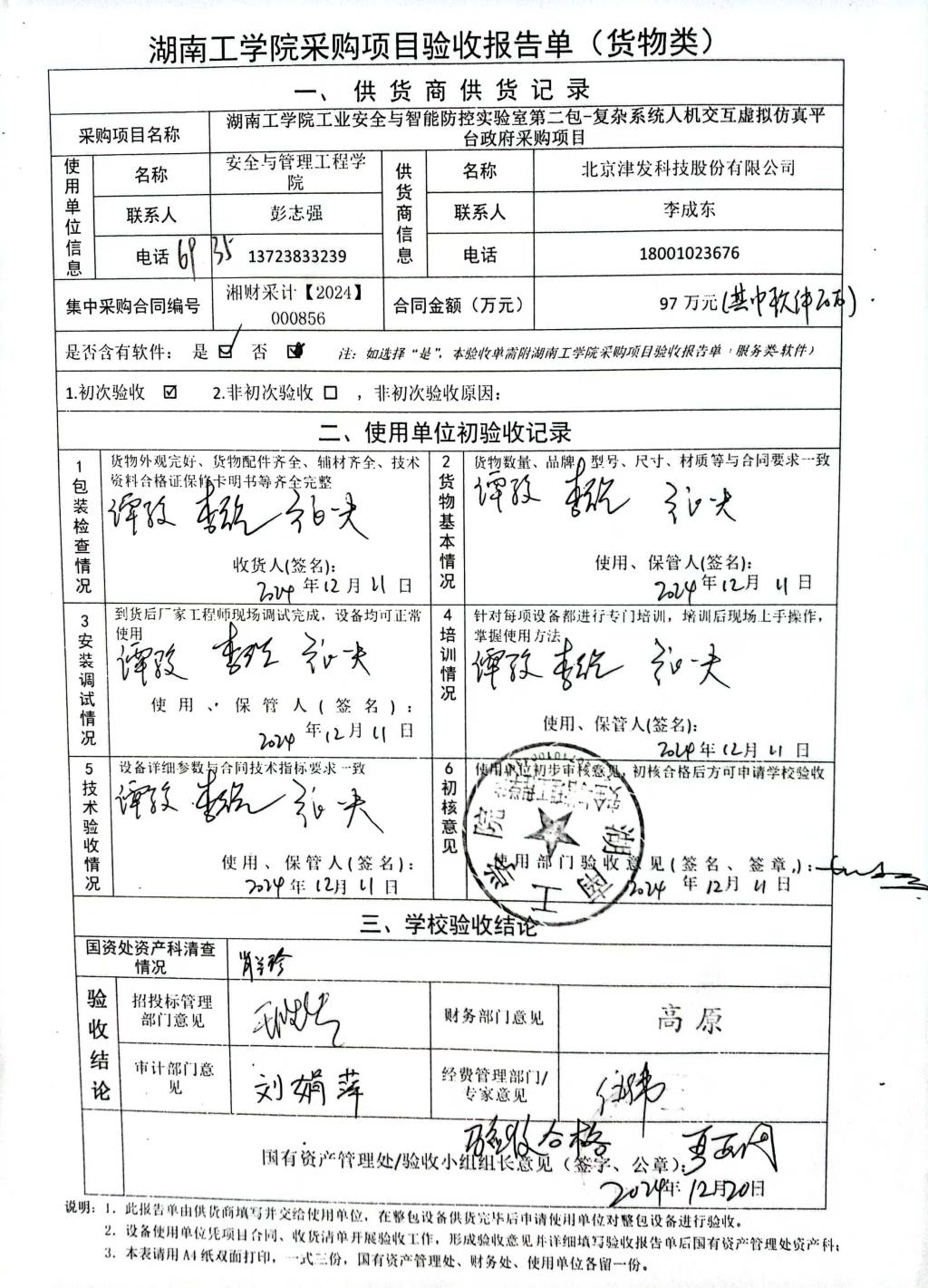 2024年12月关于HNGXY2024【69】号 购字2024【35】号采购项目验收情况公告