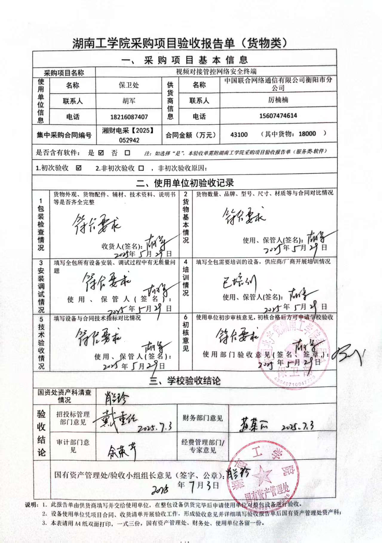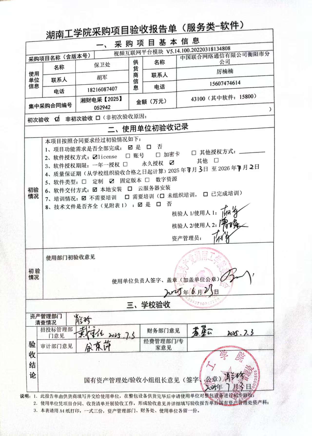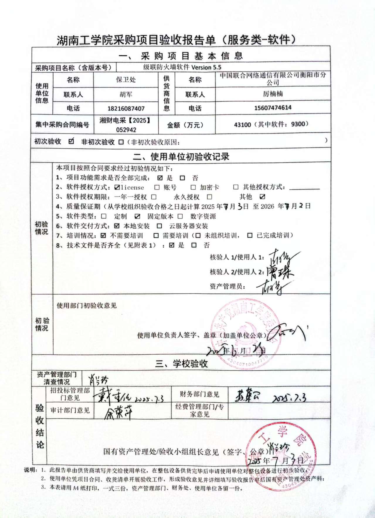 2025年7月关于湘财电采【2025】052942号项目验收情况公告