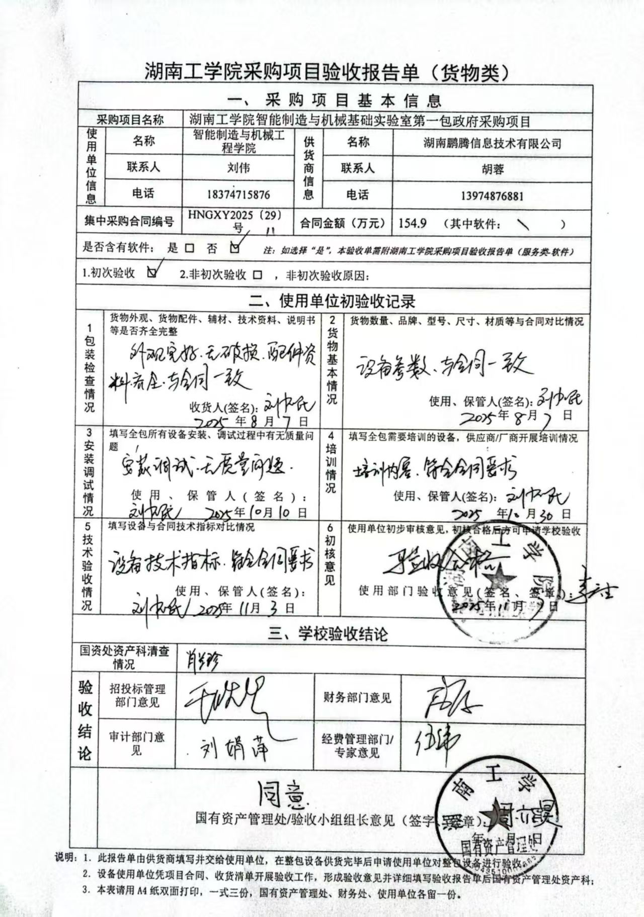根据国有资产管理处对采购项目的验收安排,2025年11月14日国有资产管理处组织招投标管理与服务中心、审计处、财务处、教务处以及使用部门代表对供应商的项目进行现场验收。