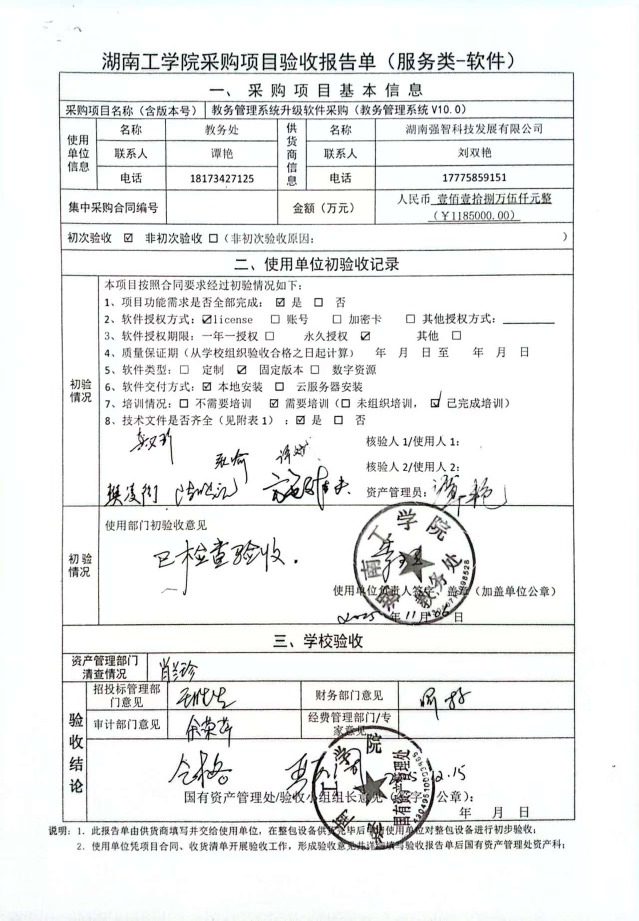 根据国有资产管理处对采购项目的验收安排,2025年12月10日国有资产管理处组织招投标管理与服务中心、审计处、财务处以及使用部门代表对供应商的项目进行现场验收。