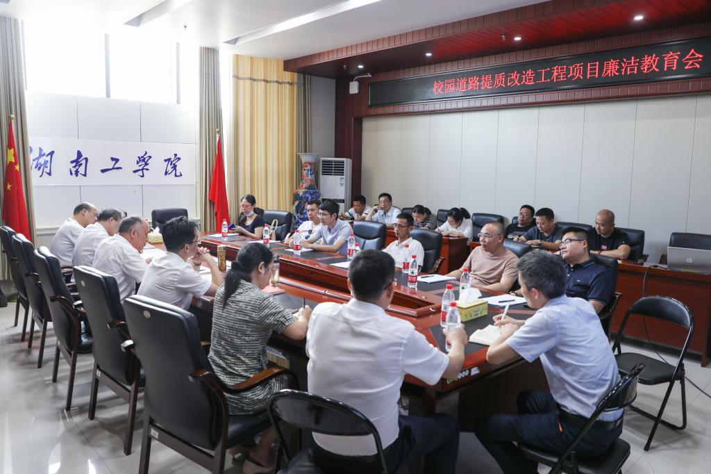 6月27日下午,学校举行校园道路提质改造专题廉洁教育会。党委委员、纪委书记张治春,党委委员、副校长何建雄,党委委员、纪委副书记袁勤,各相关职能部门、工程各标段项目负责人参加了会议。