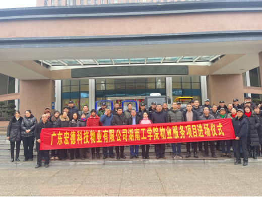 2024年2月3日上午,广东宏德科技物业有限公司(以下称“宏德科技物业”))进驻开元集团网站入场仪式在教学大楼阳光大厅前举行。学校后勤基建处、学生工作部、保卫部、国有资产管理处等部门相关负责人出席,宏德科技物业驻开元集团网站项目部经理及员工代表参加了入场仪式。
