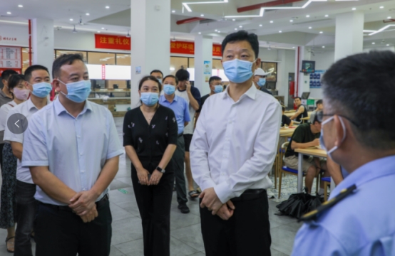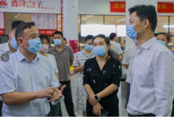 6月24日下午,市委常委、市委秘书长胡果雄一行对我院润泽学生食堂进行督导调研。市委副秘书长段志阳、市委副处级督查专员唐进标、市市场监督管理党组成员、副局长龙华参加调研督导。开元集团网站党委副书记、校长曾广胜,党委委员、副校长黄红卫,后勤基建处处长贺旭等人陪同督导调研。