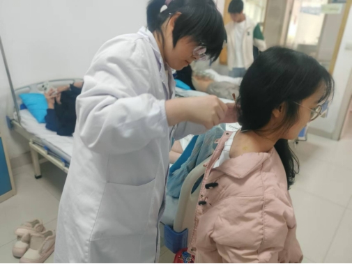 活动现场通过展板和视频介绍了中医历史、理论、著名中医人物,提供了中医书籍和资料供师生阅读,现场还展示了多种中药材供师生触摸及闻香。为了让师生们更加直观地感受中医药的魅力,还邀请了中医专家为学生提供健康咨询,针对学生常见的健康问题提供专业建议,还提供了中药茶饮、针灸、艾灸、干眼症、拔罐等中医体验,让师生亲身感受了中医的治疗效果。