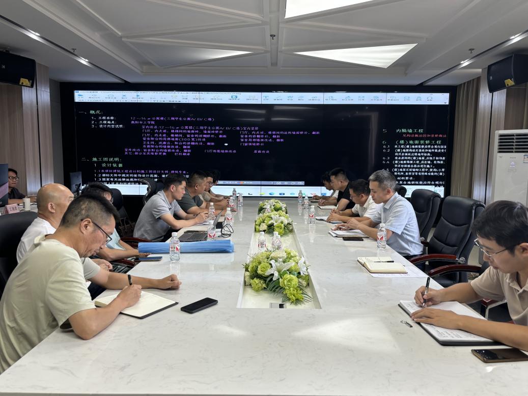2025年7月31日下午,后勤基建处在511会议室组织召开屋面防水及学生宿舍维修项目技术交底会。副处长周志学、副处长张勇,机关第十三党支部委员、项目负责人及施工、监理单位代表参加会议。