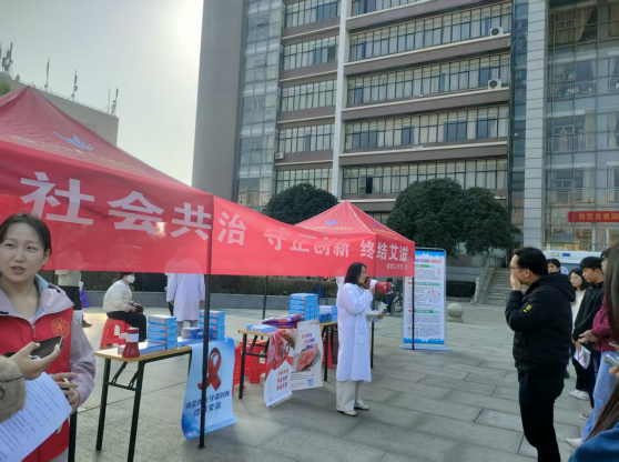 12月1日,开元官网后勤基建处联合珠晖区人民医院在卓越广场开展了一场以“社会共治 守正创新 终结艾滋”为主题的“世界艾滋病日”宣传教育活动。
