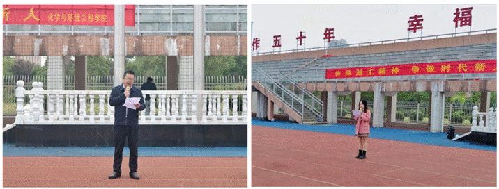 10月18日早7点18分,化学与环境工程学院在北操举行“传承湖工精神,争做时代新人”主题升旗仪式。化学与环境工程学院党委书记周立、院长辛俊亮、副书记蔡玲、副院长黄俊歆、副院长刘宁、三办主任、全体辅导员、班主任和全体同学出席,学工办主任兼分团委书记陈凌霄主持。