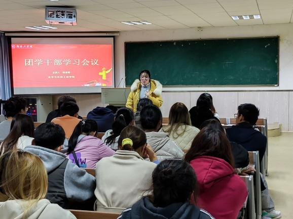 12月23日下午5时40分,化学与环境工程学院在1301召开团内干部会议。本次会议由院党委副书记蔡玲、学工办主任兼团委书记陈凌霄带领团学会全体成员及各班班长、团支书进行学习。