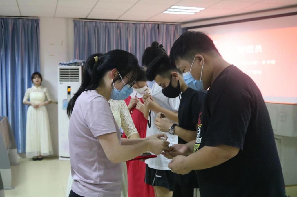 在颁奖环节我们播放了一段本学年团活动视频,视频记录了我院老师与同学在不同团学活动的身影,呈现了在过去时光中取得的不俗成绩,学院领导及老师分别对工作中涌现出的优秀集体和先进个人进行表彰颁奖学生代表上台发言他表示作为新时代的大学生,应与学校和祖国的发展同频共振,将自己个人的前途同学校、地方以及社会的发展紧密结合,在学校“强旅报国”和实现中华民族伟大复兴“中国梦”的征程中贡献青春力量。陈凌霄为新团员颁发团员证并佩戴团徽体成员共同重温了入团宣誓通过信仰及实际行动继承和发扬共青团员精神