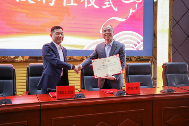 曹执令与邹海鸥代表双方签订产学研合作协议、“海鸥奖教奖学助学基金”捐赠协议。曹执令代表学校接受捐赠并为邹海鸥颁发客座教授聘书,校企双方领导嘉宾合影,共同见证这一合作盛举的重要时刻。
