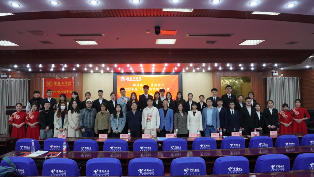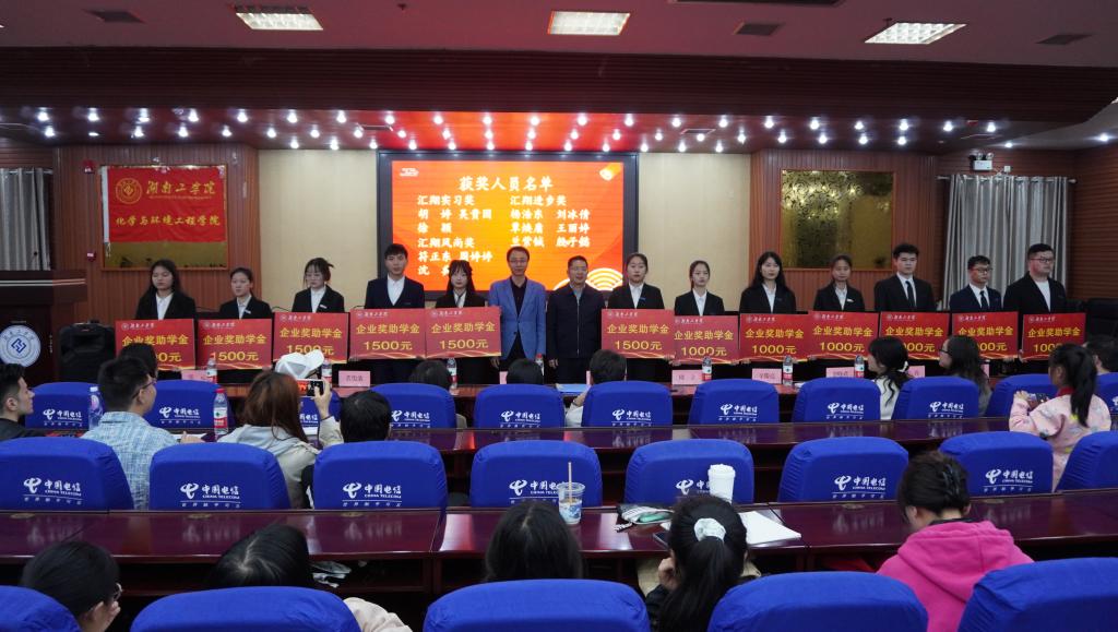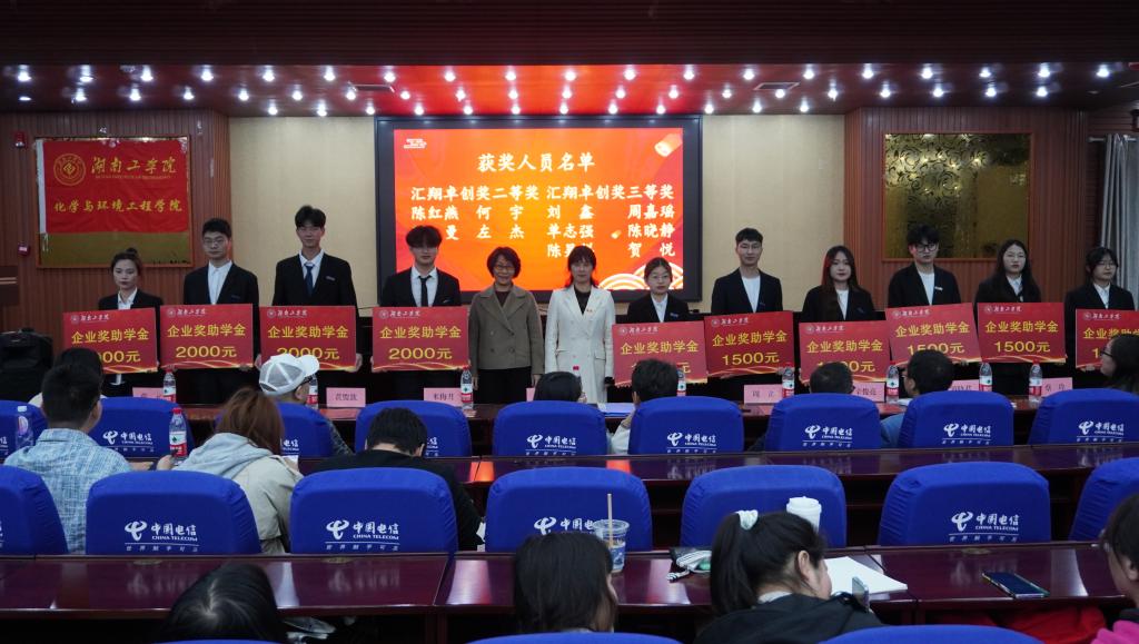 4月24日晚7点,化学与环境工程学院2022年度“汇翔奖学助学基金”颁奖典礼在蔡伦报告厅隆重举行。浙江汇翔新材料科技股份有限公司行政总经理魏臣阳、人事主管杨丹、开元集团网站基金会主任米梅月、校友联络中心副主任罗晓君、化学与环境工程学院党委书记周立、院长辛俊亮、副书记蔡玲、副院长黄俊歆、副院长刘宁及全体辅导员老师出席,“汇翔奖学助学基金”受奖助学生、学院学生代表参加。