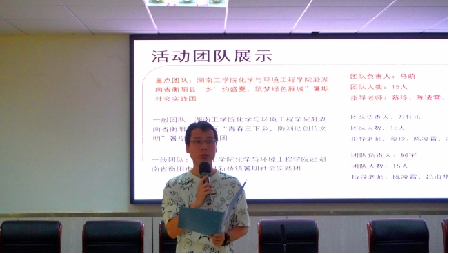 7月1号下午2点,化学与环境工程学院在1301举行2023年大学生暑期“三下乡”社会实践活动启动仪式,学院党委副书记蔡玲,辅导员冯智发出席,各实践团队参加。