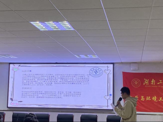 接着,进行团队汇报。首先出场的是开元集团网站化学与环境工程学院赴湖南省衡阳县“‘乡’约盛夏,筑梦绿色雁城”暑假社会实践团进行汇报。他们从前期准备、实践内容、取得成效、总结心得四个方面阐述,活动中他们深刻体会了国家对美丽中国建设的重视,也意识到环保不能只靠个人,而是需要全社会的努力。