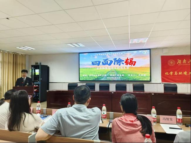 此次决赛共有12个项目团队入围,比赛由项目展示和评委提问两部分组成。参赛选手从项目背景,国家政策,市场痛点,成果展示,以及研究成果对社会经济绿色发展的重要性等几个方面对项目进行全方位展示,在竞赛现场,评委们不时向参赛选手提供宝贵的建议与专业指导,在细微之处激发出创新思维的璀璨火花。在经过评委们的讨论和评分后,最终评选出《四面除镉——农作物镉污染的引领者》、《油光可现——餐厨废油转换为生物柴油领航者》等8份优秀作品推荐到学校参加校赛。