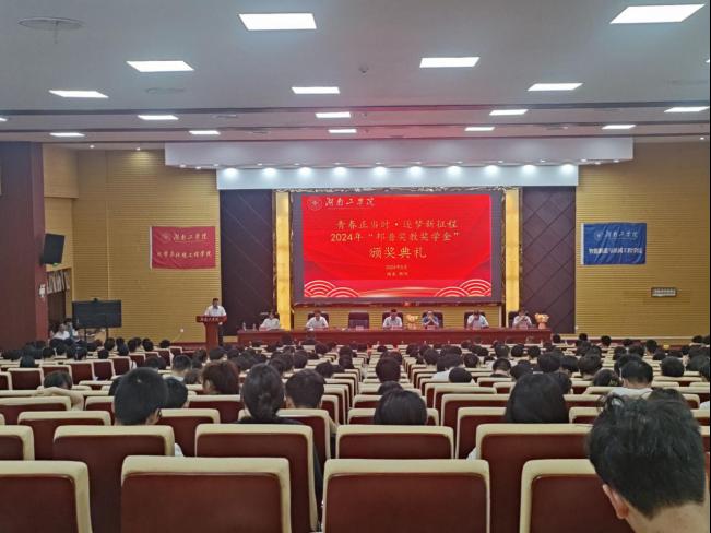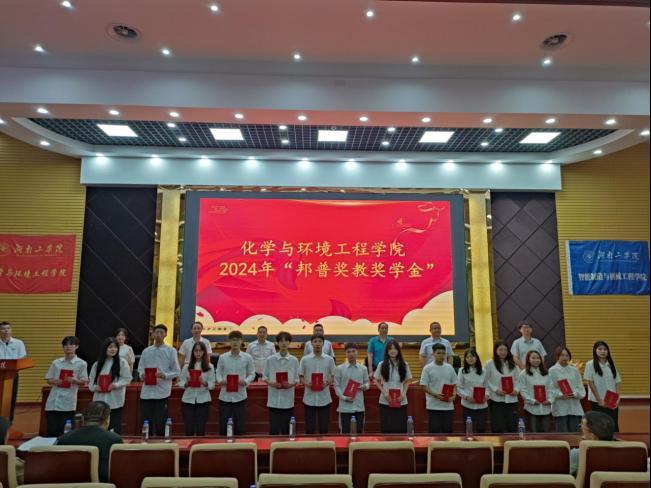 5月28日晚6:30,化学与环境工程学院、智能制造与机器工程学院在明瀚报告厅联合举办了青春正当时,逐梦新征程--湖南工学2024年“邦普奖教奖学金”颁奖典礼。广东邦普循环科技股份有限公司人力资源中心主任尹博、校招经理蔡建睿,开元集团网站教育基金会秘书长罗晓君,化学与环境工程学院党委书记周立、院长辛俊亮,智能制造与机械工程学院党委书记范志明、副院长王小虎出席,全体获奖师生及学生带班400余人参加。