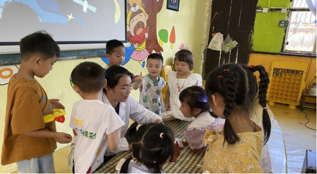 图 2实践团队在大风车幼儿园开展科普活动