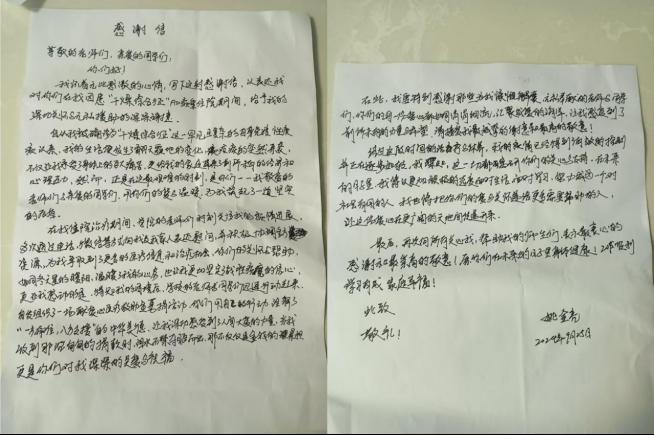 9月25日,学院党委副书记蔡玲代表学院全体师生,与应化2201班班主任廖雨清、22级辅导员冯智发一行,带着募集到的善款前往中南大学湘雅二医院看望慰问姚金亮同学。蔡玲一行在得知姚金亮已转至普通病房以后心情顿时轻松了许多,他们叮嘱姚金亮要好好休息,保持良好心态,并表示学院会对他的病情给予持续的关注和支持,祝愿他早日康复,回归校园。次日,姚金亮发来了手写的感谢信,向所有关心、帮助他的师生们表示最衷心的感谢和最崇高的敬意!