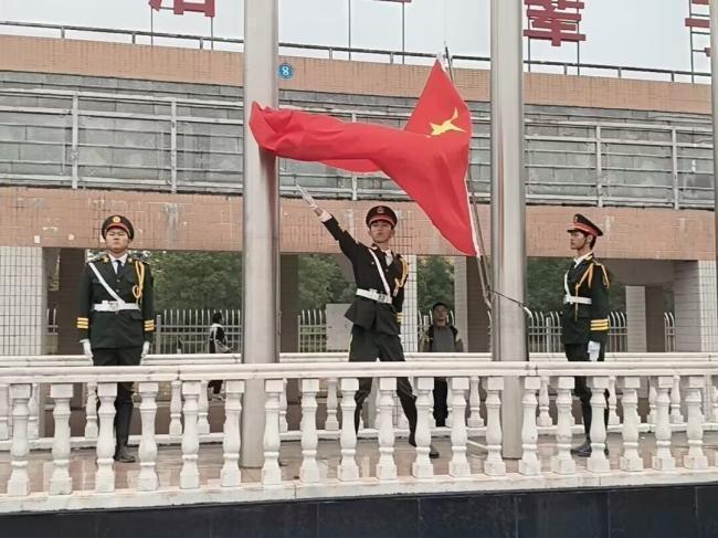 随着激昂的国歌声奏响,鲜艳的五星红旗冉冉升起,迎风飘扬。全体师生向国旗肃立,行注目礼。这一刻,大家心中充满了对祖国的热爱和对革命先辈的缅怀之情。