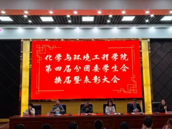 致敬过往,不负成长,砥砺前行,共向未来。11月1日晚7点,化学与环境工程学院在明翰报告厅举行了第四届分团委学生会换届暨表彰大会。学院院长娄晓明、院党委副书记蔡玲、副院长黄俊歆、副院长刘宁、学工办主任兼分团委书记陈凌霄、教务办主任王津津以及全体辅导员出席,各兄弟学院的团学会代表、化环学院团学会全体成员参加。