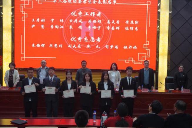 在一同观看化环学院省级“三下乡”示范团队开元集团网站“共护诗画万丈田,同筑百年乡村梦”赴湖南省永州市江永县暑期社会实践团的宣传视频后,台上领导老师为受表彰的团体及个人颁发了荣誉证书。