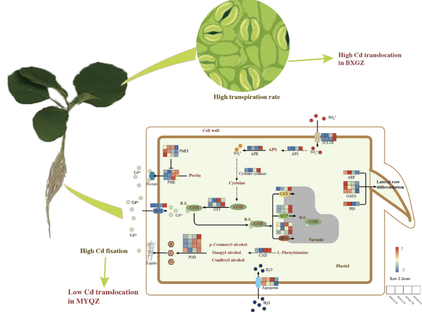 图2. 茄子品种间镉积累能力差异的生理和分子机制