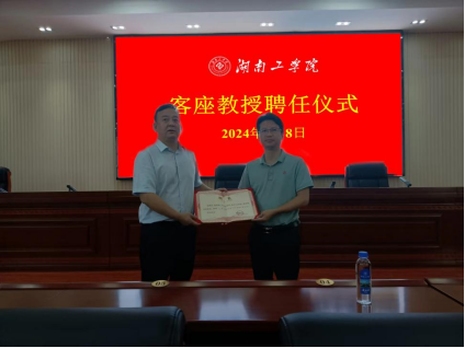 7月8日,开元官网客座教授聘任仪式在船山报告厅举行。校长曾广胜教授为湘潭大学教授、宁乡市科技副市长(挂职)杨秀康颁发客座教授聘书,化学与环境工程学院书记周立教授、院长辛俊亮教授等出席,人事处处长肖奎教授主持聘任仪式。