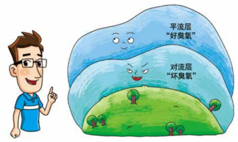 平流层臭氧能够强烈地吸收太阳紫外辐射,像一道天然屏障保护着地球生物圈,使动植物免受危害,因此被称为“地球的保护伞”,也被称为“好臭氧”,需要加以保护。但是在对流层中,臭氧是一种污染气体,也是重要的温室气体。对流层臭氧不仅能吸收地气系统的长波辐射而加热大气,还可以参与大气光化学反应,进而改变其他温室气体的含量和分布,影响地气系统的辐射平衡。高浓度的地面臭氧将引发城市光化学烟雾、影响人类健康、严重危害生态环境。因此对流层臭氧被称为“坏臭氧”,需要降低其浓度。目前针对臭氧污染的研究主要集中在对流层臭氧。