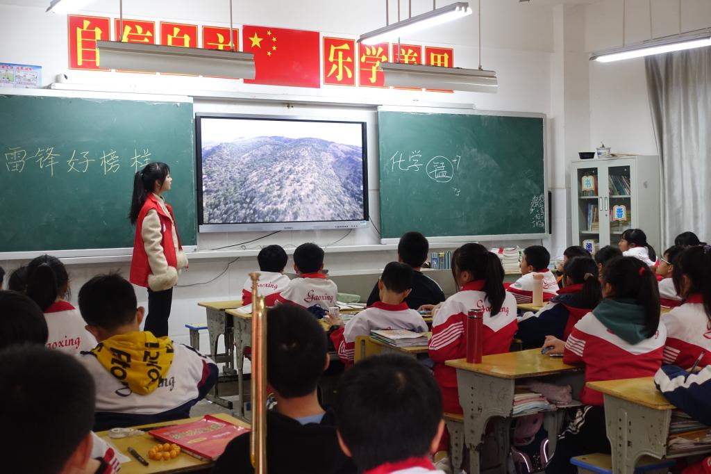 3月21日下午,化学与环境工程学院“湖小青”分队志愿者小组前往衡阳市雁峰区高兴小学欧水岭校区开展“学习雷锋精神,建设生态文明”志愿服务,我院35名“湖小青”为该校五年级7个班的小朋友们送上了一堂生动有趣的公益德育课。
