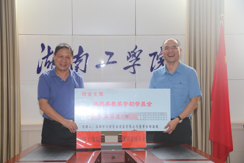 邹海鸥在讲话中介绍了力特实业的发展历程和设立“海鸥奖教奖学助学基金”、与母校开启校企战略合作的初衷与愿景,邹海鸥表示,只有好老师才能教出好学生,希望通过新设奖教基金,能为母校的师资队伍建设贡献绵薄之力,同时他对即将开启的与母校的深度合作充满期待。