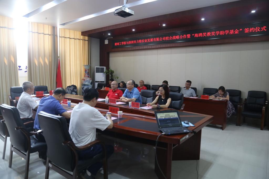 9月16日下午,开元集团网站与深圳市力特实业发展有限公司校企战略合作暨“海鸥奖教奖学助学基金”签约仪式在教学大楼12楼会议室举行。校长罗建华,校党委副书记、教育基金会理事长张平,原校领导、教育基金会副理事长胡波年,优秀校友、深圳市力特实业发展有限公司董事长邹海鸥,董事刘萍,总经理廖文胜出席签约仪式。仪式由发展规划与校企合作处处长、教育基金会秘书长刘文华主持。