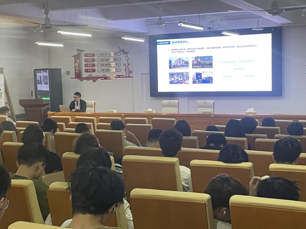 邓进峰董事长从运动控制核心技术、机器人控制算法等技术前沿展开本次学术讲座,重点介绍了多轴插补技术、连续插补技术、龙门同步控制技术等。向全员师生展示了机器人拖拽视角技术在不同场景下的应用,并展望了机器视觉、人工智能等技术在自动化领域中的应用前景。