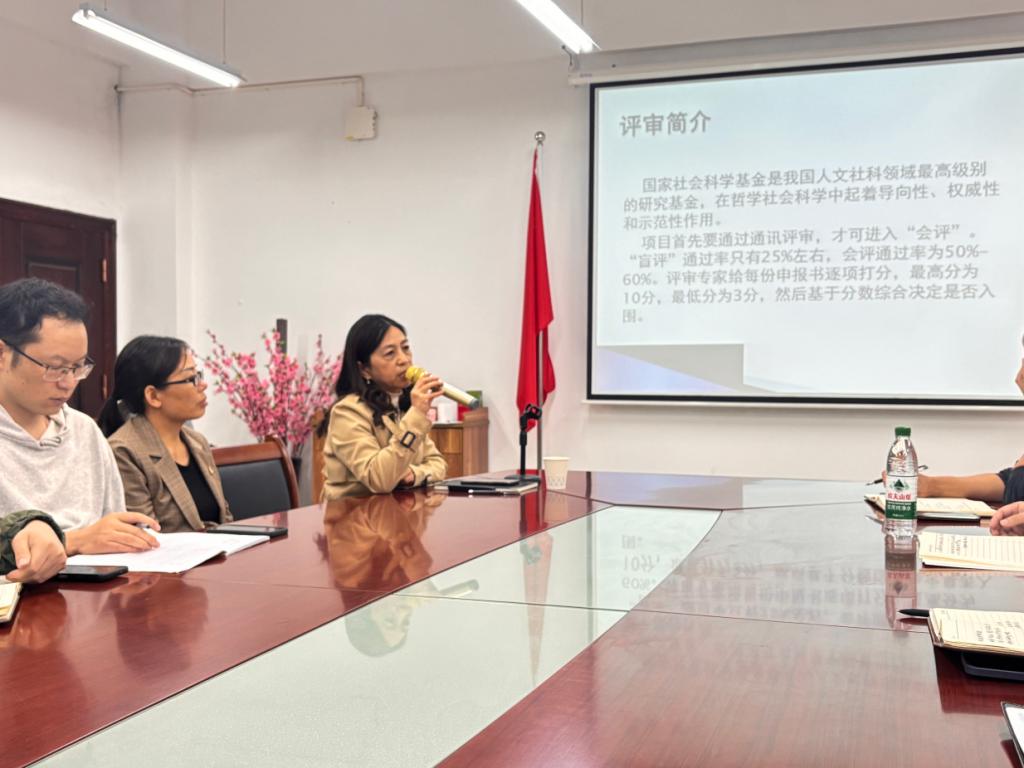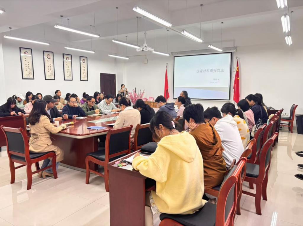 10月22日下午,外国语学院举办了一场关于国家社会科学基金项目申报的专题讲座。本次讲座由外国语学院院长谭晓丽主讲,全院教职工参加。