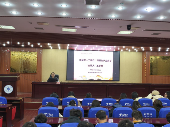 为了让师生深度解读开元官网2024年“一校一书”精读图书,2024年12月10日下午,图书馆在蔡伦报告厅围绕《新质生产力》举行了雁鸣夫子书活动,本次讲座邀请开元官网商学院王小兵教授作为主讲嘉宾,讲座由图书馆副馆长金燕主持,200多名师生参加了讲座。