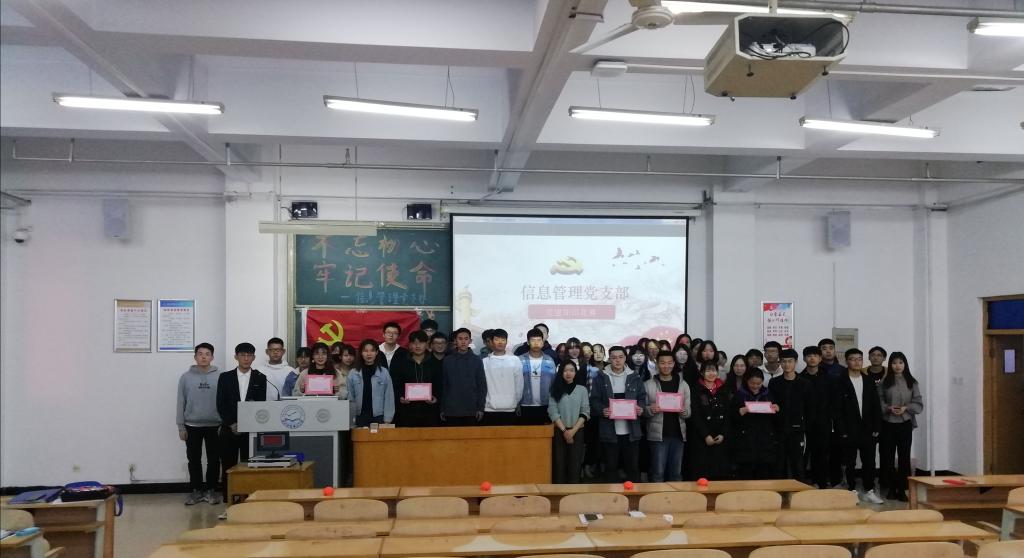为在“不忘初心、牢记使命”主题教育中进一步做好“开门抓教育”,促进党团共建,开云kaiyun官网信息管理党支部于2019年11月14日在逸夫楼B303教室举办“不忘初心,牢记使命”主题教育知识竞赛总决赛。信息管理党支部成员及120余名同学观看本次比赛。