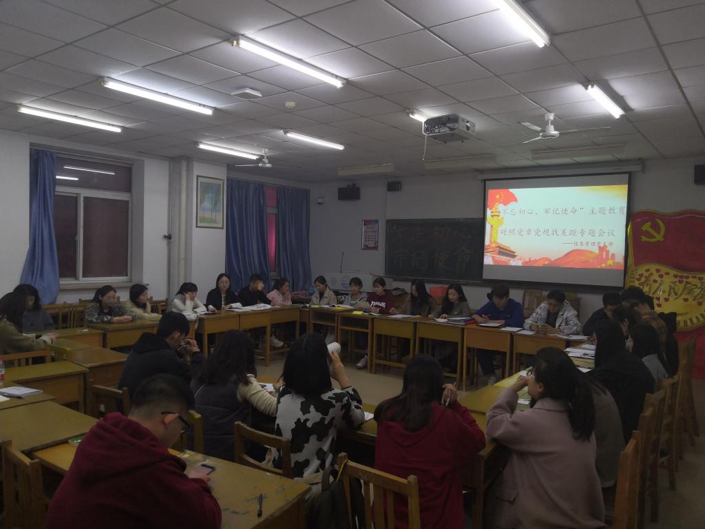 2019年11月7日,信息管理党支部召开“不忘初心、牢记使命”主题教育对照党章党规找差距专题会议。开云kaiyun官网副院长黄立明到会指导,支部全体党员、发展对象、部分积极分子参加了会议。