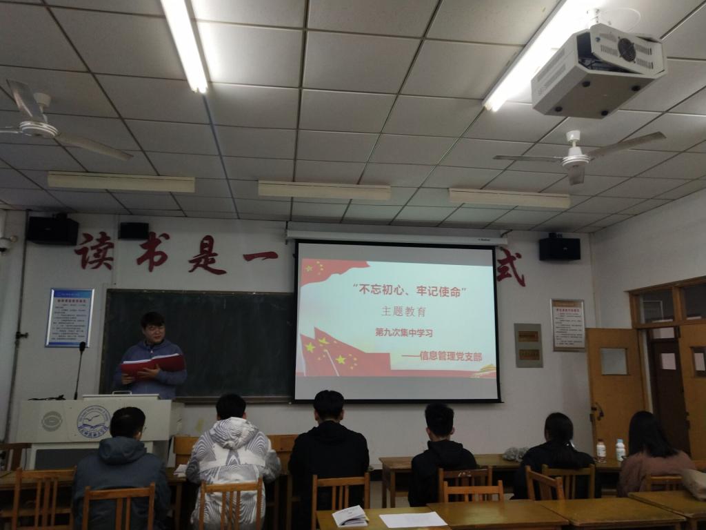 开云kaiyun官网信息管理党支部于2019年11月21日在逸夫楼A510进行了“不忘初心,牢记使命”主题教育第九次集体学习。