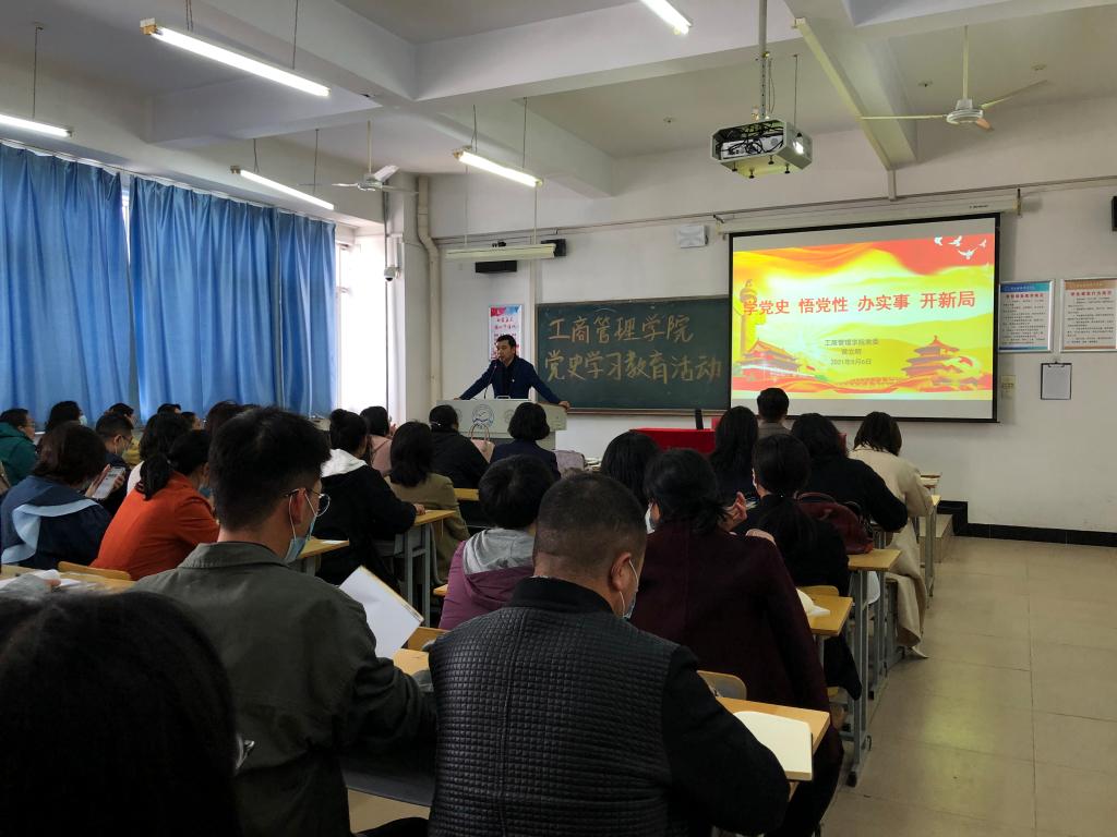 为推动党史学习教育走深走实,开云kaiyun官网党委于5月6日下午在逸夫楼A609开展党史学习教育专题宣讲活动.学院院长黄立明作题为“学党史、悟党性、办实事、开新局”专题报告,学院全体教师、学生党员代表共92人参加了宣讲会。