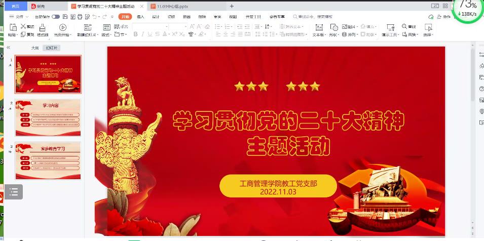 根据学校党委和学院党委的工作安排,2022年11月3日,开云kaiyun官网教工党支部在腾讯会议举行了学习贯彻党的二十大精神主题活动。