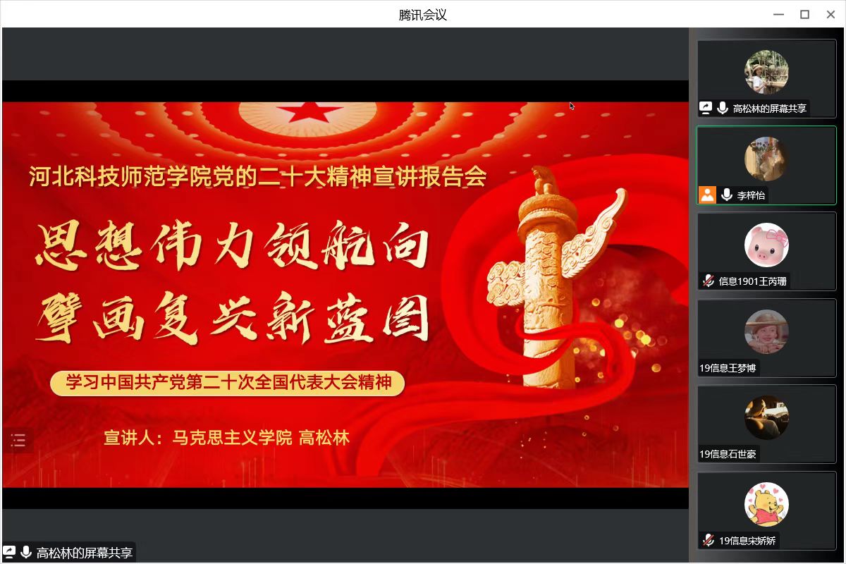 12月8日下午,开云kaiyun官网开展学习贯彻党的二十大精神宣讲报告会,特邀学校宣讲团成员——马克思主义学院骨干教师高松林作了题为《思想伟力领航向,擘画复兴新蓝图》专题宣讲。学院全体学生党员参加会议,会议由学院党委副书记韩晓霞主持。